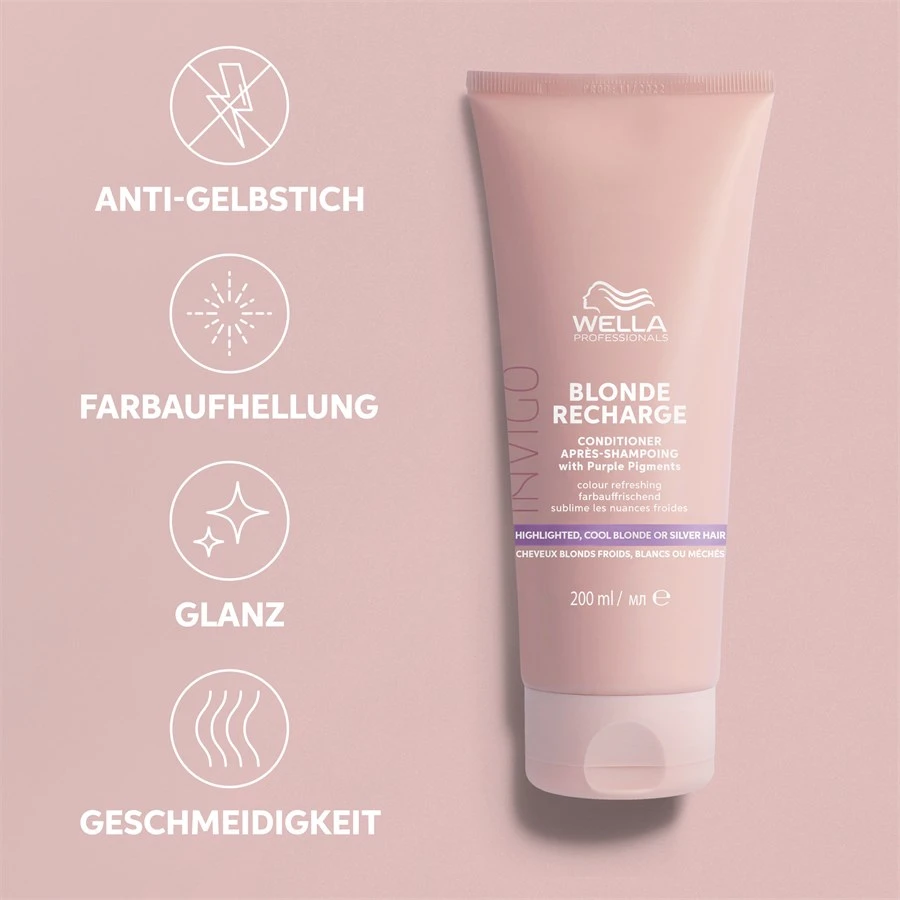 Le Color Recharge Color Refreshing Conditioner Cool Blonde est un produit de soins capillaires de Wella, spécialement créé pour le soin optimal des cheveux blonds. L’après-shampooing contient des pigments de couleur qui aident à maintenir spécifiquement la couleur blonde fraîche des cheveux. Les cheveux blonds obtiennent plus de luminosité et rayonnent brillamment en appliquant le produit de soins capillaires de Wella. L’effet des colorants capillaires est ainsi prolongé. Convient pour une utilisation sur les cheveux blonds naturels, colorés ou éclaircis.