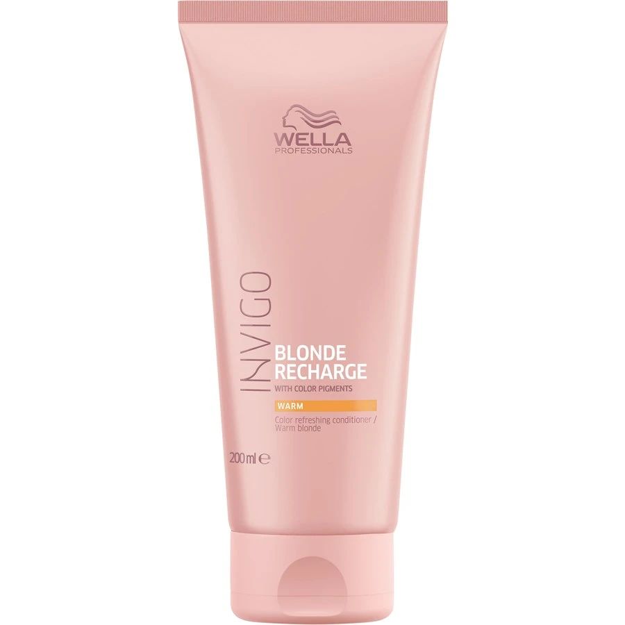 Le Color Recharge Color Refreshing Conditioner Warm Blonde Blond Recharge de Wella nourrit intensément les cheveux et assure une intensité de couleur longue durée pour les tons blonds. Il est adapté pour les cheveux blonds naturels ou colorés ainsi que pour les cheveux blancs. Il est enrichi de pigments de couleur efficaces qui rafraîchissent les tons blonds, assurent une longue rétention des couleurs et évitent les démarcations cuivre disgracieuses. Son complexe d’ingrédients actifs nourrit et régénère les cheveux les nourrit intensément.